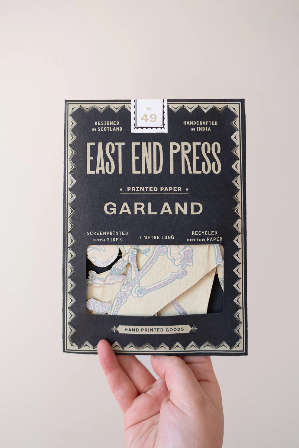 Ten fun, dancing skeletons are doing the Monster Mash along the length of this three meter garland!